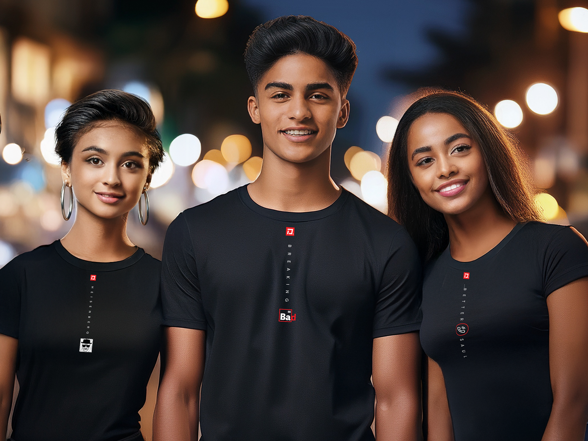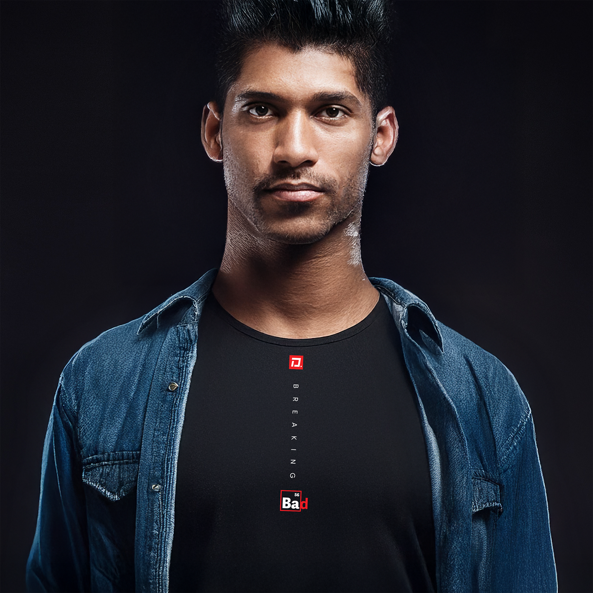 From the TV series, Breaking Bad. Simple black, 100% cotton, short sleeve, crew neck, New York style. Featuring original graphic art by Zevon — US$28 (SM • M • L • XL • 2XL) Also available in Women's fitted Tees (US$28)