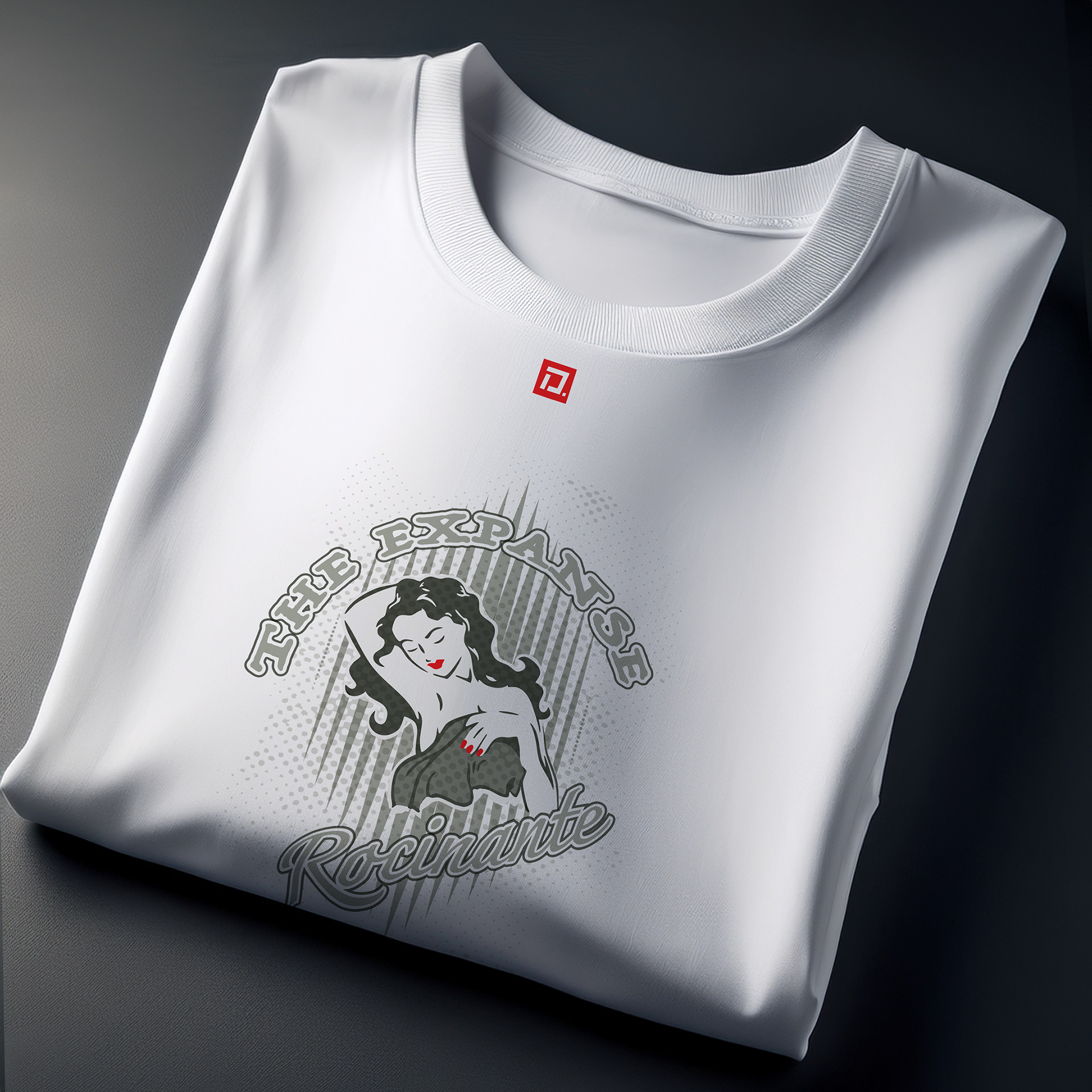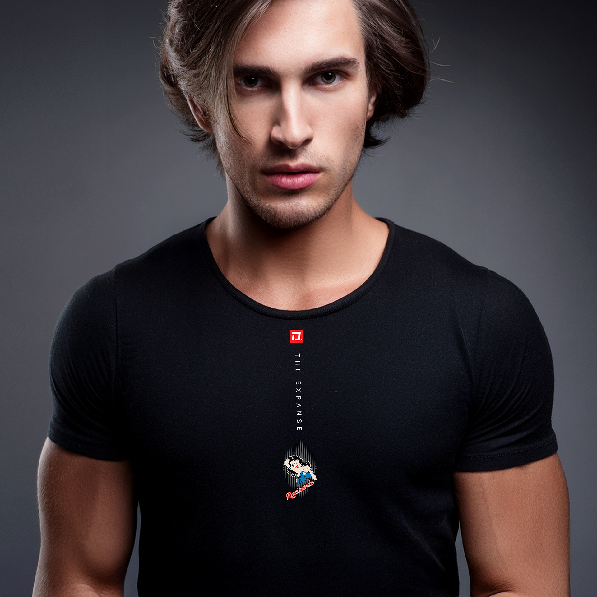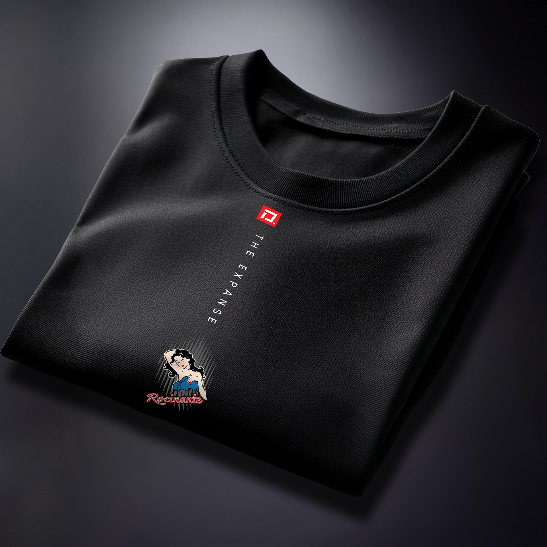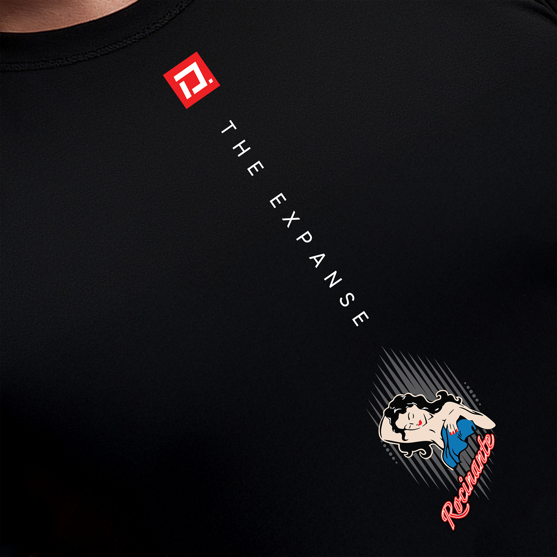 "Rocinate" from the TV Series, The Expanse. Simple black, 100% cotton, short sleeve, crew neck, New York style. Featuring original graphic art by Zevon — US$28 (SM • M • L • XL • 2XL) Also available in Women's fitted Tees (US$28)