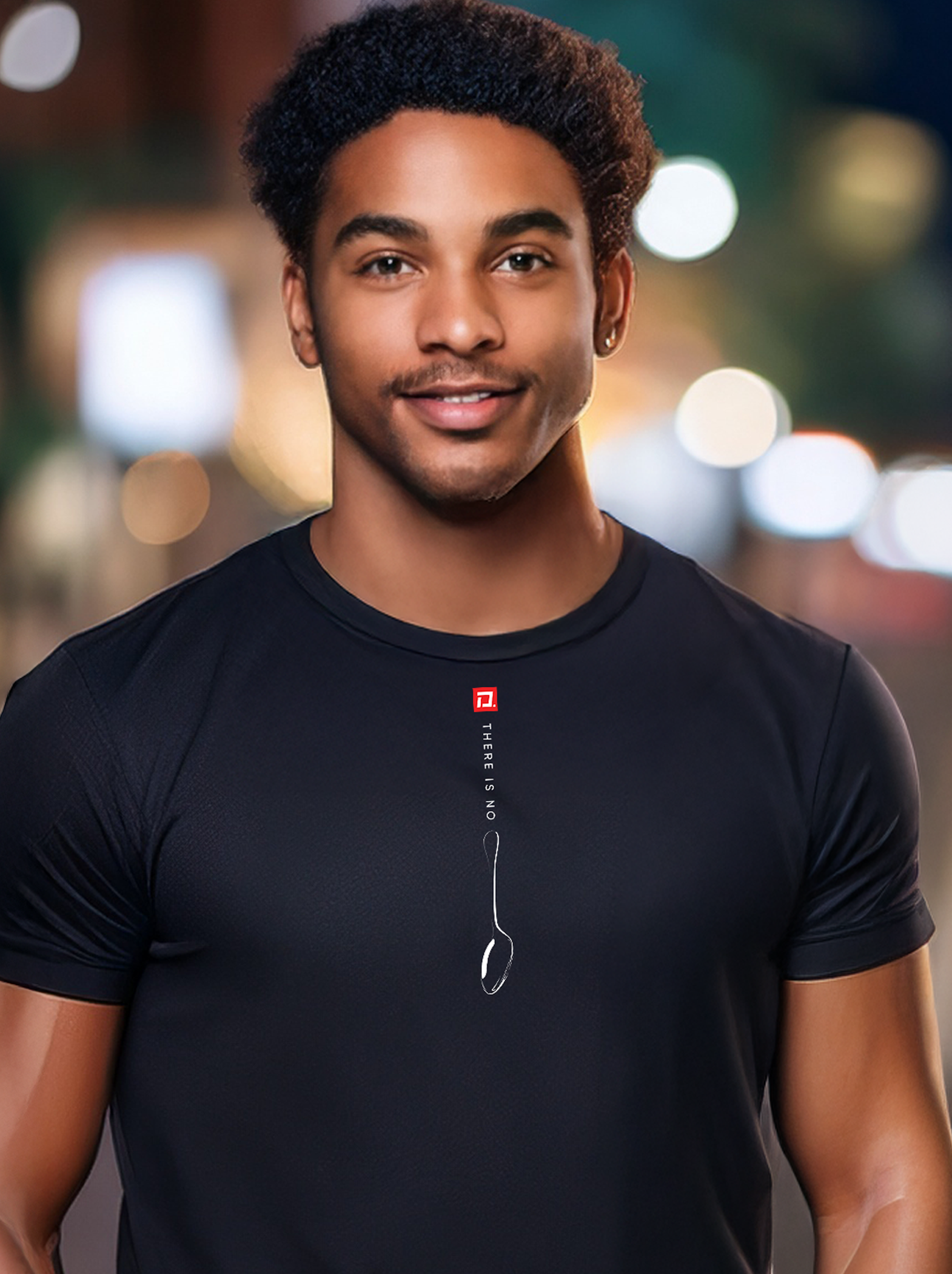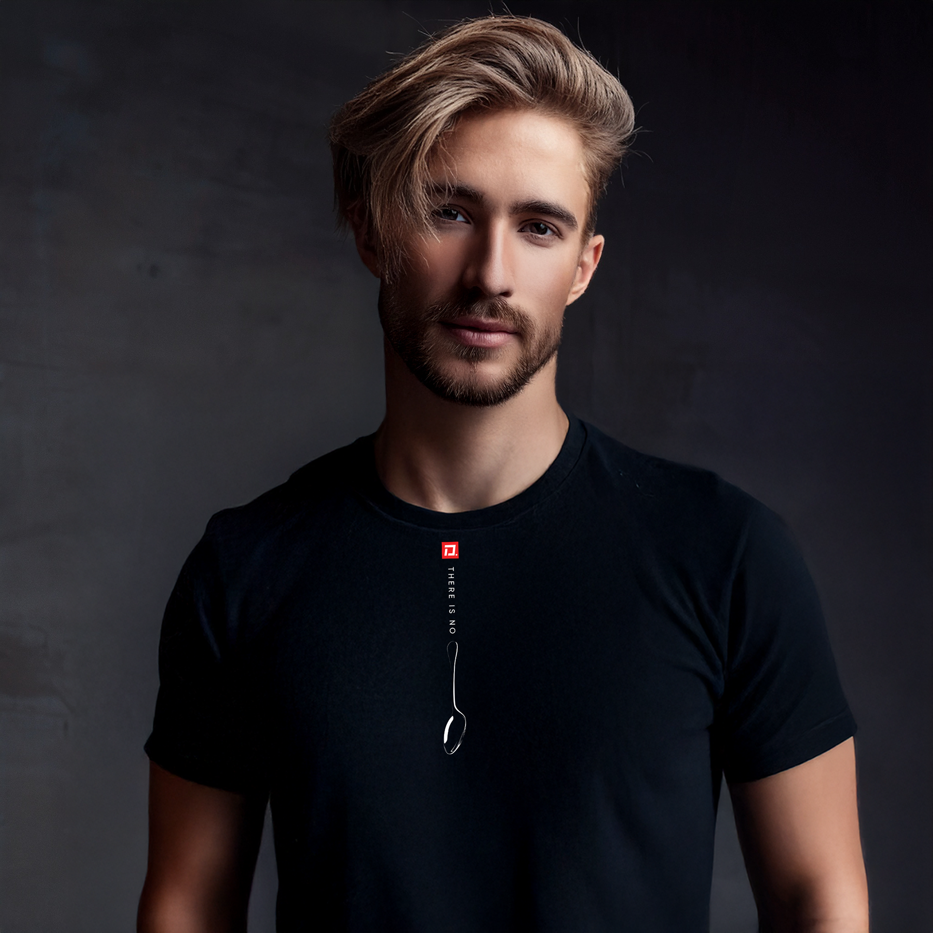 From the movie, The Matrix. Simple black, 100% cotton, short sleeve, crew neck, New York style. Featuring original graphic art by Zevon — US$28 (SM • M • L • XL • 2XL) Also available in Women's fitted Tees (US$28)